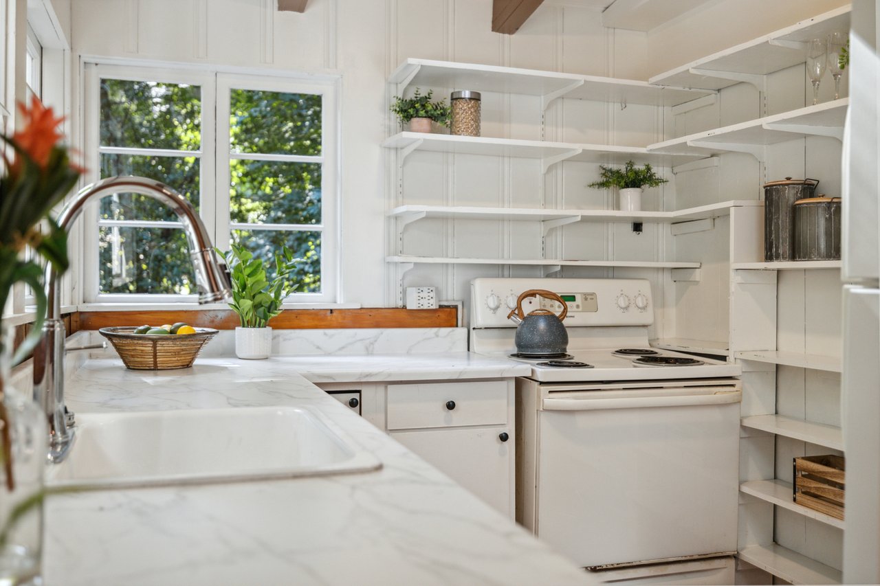 Set on just over a quarter acre of picturesque California land, this thoughtfully updated 1-bedroom, 1-bath home is more than a getaway it's a serene sanctuary along a tranquil creek. W/ charm, comfort, & convenience, it's the perfect escape from the daily grind. Fresh exterior paint & thoughtful upgrades enhance its character, & the flexible layout. On the main level, the inviting living room features a cozy fireplace, oversized windows, & a skylight that fills the space with natural light. The kitchen offers open shelving, ample counter space, and views that make everyday moments feel peaceful and connected to nature. A bonus flex space is perfect for a home office, art studio, or quiet retreat. Downstairs, you'll find an additional living area with a bedroom, full bath, & kitchenette ideal for extended family, guests, or potential rental income. This space adds both flexibility and value. Step outside to enjoy summer BBQs on the spacious patio or relax in the generous yard w/ room to garden, create, or simply soak in the sun all while enjoying the soothing sounds of the creek. W/ easy access to commuter routes, Santa Cruz beaches, & vibrant downtown favorites like Laili & Full Steam Dumpling, this rare creekside retreat offers the best of nature & neighborhood. Don't miss it!